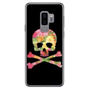 - Galaxy S9+ ケース SC-03K SCV39 Flower skull ブラック スマホケース (受注生産)