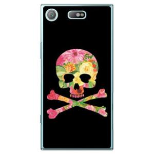 - Xperia XZ1 Compact ケース SO-02K Flower skull ブラック スマホケース (受注生産)
