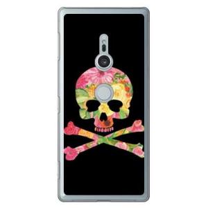 - Xperia XZ2 ケース Flower skull ブラック スマホケース (受注生産)
