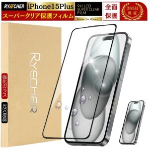 iPhone15Plusフィルム 全面保護 iPhone15 Plus ガラスフィルム アイフォン15 Plus 保護フィルム クリア光沢 アイホン15プラス グレア RYECHER 液晶保護フィルム