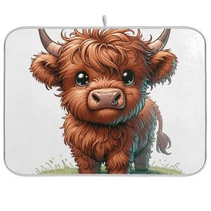 【並行輸入品】Cute Highland Cow on Grass 18 x 24 Inch Kitchen Drying Mat Dryin