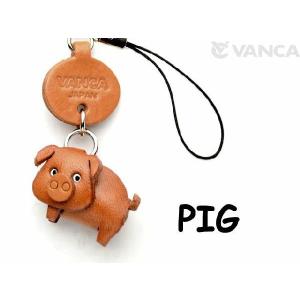 - 本革携帯 動物ストラップ ぶた バンカクラフト 革物語 VANCA CRAFT レザー 手作り グッズ 雑貨 革小物 ブタ 豚 アニマル 名入れ可