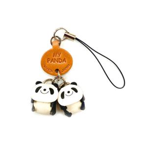 - 本革携帯 動物ストラップ 双子パンダ バンカクラフト 革物語 VANCA CRAFT レザー 手作り グッズ 雑貨 革小物 パンダ アニマル 名入れ可