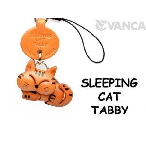 - 本革携帯 猫ストラップ とらねこちゃん ねむり トラねこ バンカクラフト 革物語 VANCA CRAFT レザー 手作り 雑貨 革小物 トラネコ 名入れ