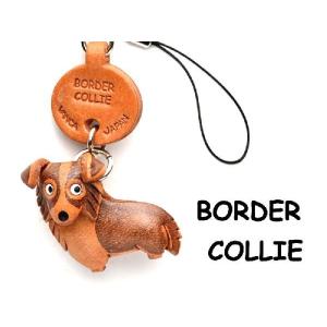 - 本革携帯 犬ストラップ ボーダーコリー バンカクラフト 革物語 VANCA CRAFT レザー 手作り 雑貨 革小物 犬 ドッグ わんこ 名入れ可