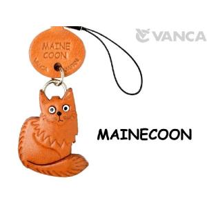 - 本革携帯 猫ストラップ メインクーン バンカクラフト 革物語 VANCA CRAFT レザー 手作り 雑貨 革小物 ネコ 名入れ