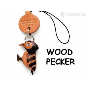 - 本革携帯 動物ストラップ きつつき バンカクラフト 革物語 VANCA CRAFT レザー 手作り グッズ 雑貨 革小物 鳥 アニマル 名入れ可