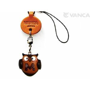 - ふくろう アルファベット M 本革・レザー 携帯ストラップ イニシャル 動物 バンカクラフト 革物語 VANCA CRAFT 手作り 雑貨 革小物 日本製
