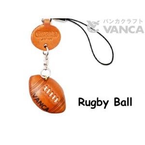- ラグビー アメフト ボール 携帯ストラップ レザー 本革 バンカクラフト 革物語 VANCA CRAFT 手作り 雑貨 革小物 名入れ可 日本製 グッズ スポーツ