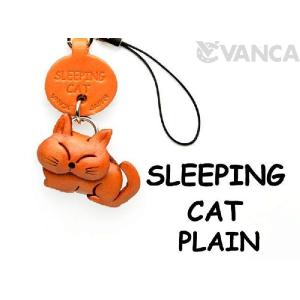 - 本革携帯 猫ストラップ ねこちゃん ねむり バンカクラフト 革物語 VANCA CRAFT レザー 手作り 雑貨 革小物 ネコ 名入れ