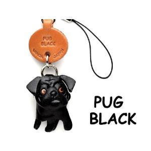 - 本革携帯 犬ストラップ パグ ブラック バンカクラフト 革物語 VANCA CRAFT レザー 手作り 雑貨 革小物 犬 ドッグ わんこ 名入れ可