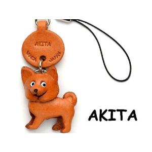 - 本革携帯 犬ストラップ 秋田犬 バンカクラフト 革物語 VANCA CRAFT レザー 手作り 雑貨 革小物 犬 ドッグ わんこ 名入れ可 日本犬