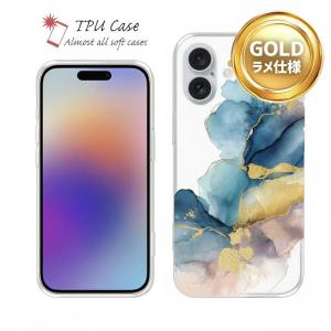 ソフトケース 花柄 スマホケース TPU ゴールドラメ 北欧デザイン ブルーマーブル No1 iPhone17 Pro Max iPhone Air iPhone16e Xperia Galaxy AQUOS Pixel