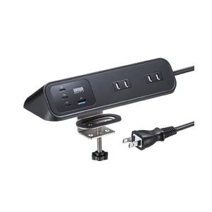 - クランプ固定式タップ(AC4個口+USB-C×3+USB-A×1・PD65W・ブラック) メーカー在庫品