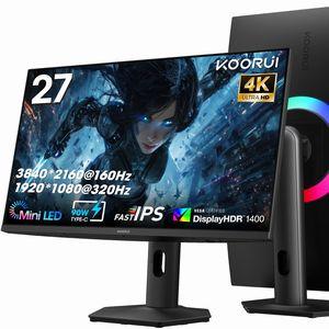 - KOORUI ゲーミングモニター 27インチ 4Kモニター デュアル解像度(4K@160Hz/FHD@320Hz) ディスプレイIPSパネル 縦横回転
