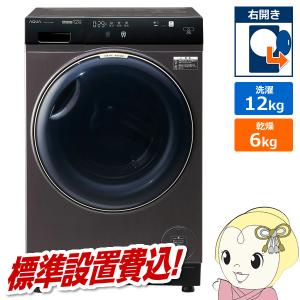 - [予約]ドラム式洗濯乾燥機【標準設置費込】 AQUA アクア まっ直ぐドラム2.0 右開き 洗濯12kg 乾燥6kg シルキーブラック AQW-DX12R-RK/srm