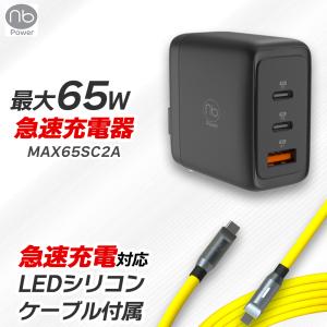 - 65W急速充電器 + 2m USB-C ケーブルx1 バンドルセット 3ポート PD/QC対応 充電器 1年保証付 (nb)Power MAX65SC2A