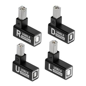 CY アダプター 4個/ロット USB 2.0 タイプ B オス - メス延長アダプター 水平垂直角度 90 度合金シェ