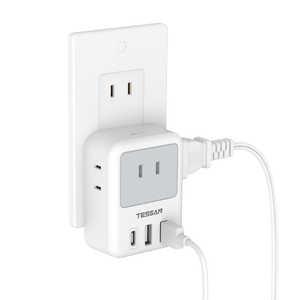 - TESSAN USB-C付3口ACマルチ電源タップ(TS-721C-GR)