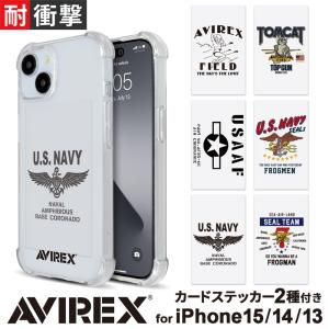 iPhone15 ケース ブランド AVIREX アヴィレックス 耐衝撃 クリア ケース カードステッカーセット iphone14 ケース iphone13 ケース スマホケース